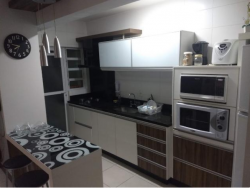 Sala ampla para 02 ambientes com sacada, Cozinha e área de serviço com armários